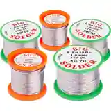 припой с разным содержанием свинца и олова: в прутках, длиной 36 и 40 см, толщиной 7,3 и 8,0 мм, соответственно; в виде проволоки в мотках, толщиной 1,0 мм с канифолью или добавлением серебра, и толщиной 1,6 и 1,7 мм, на еврокатушках;